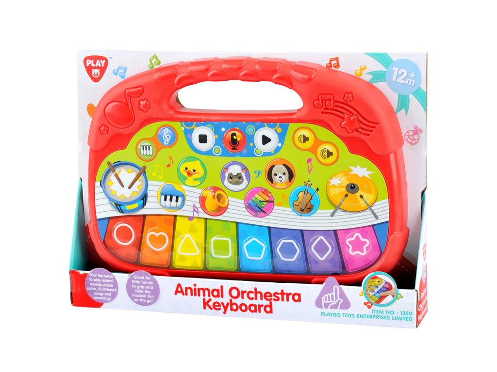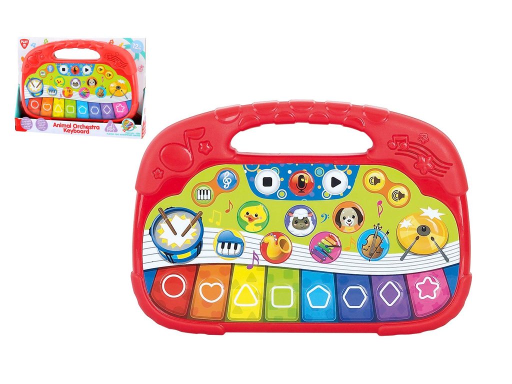 Pianko obsahuje zvuky zvířátek, hudebních nástrojů, 8 klavírních not, 10 různých písní a nahrávání. Pianko je na baterie 2x AAA, které jsou součástí hračky.