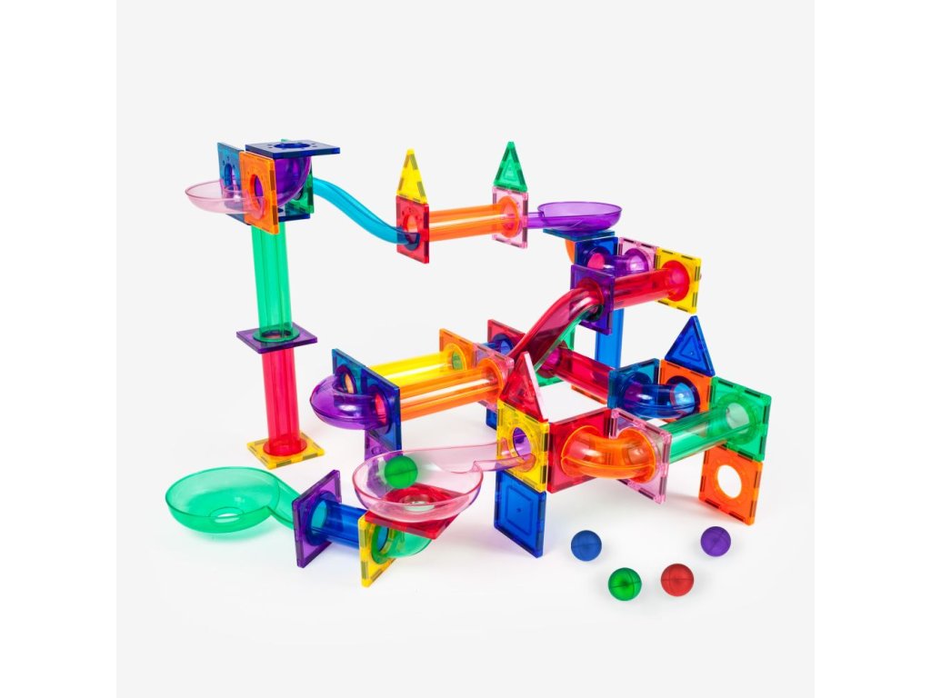 Obsahuje barevné průhledné magnetické dlaždice, rampy a trubice.Umožňuje stavbu 3D kuličkových drah. Děti mohou vytvářet vlastní závodní tratě a sledovat, jak kuličky projíždějí zatáčkami a pády. Učení skrze hru zahrnuje pohyb, gravitaci a princip příčina–následek (STEM dovednosti).