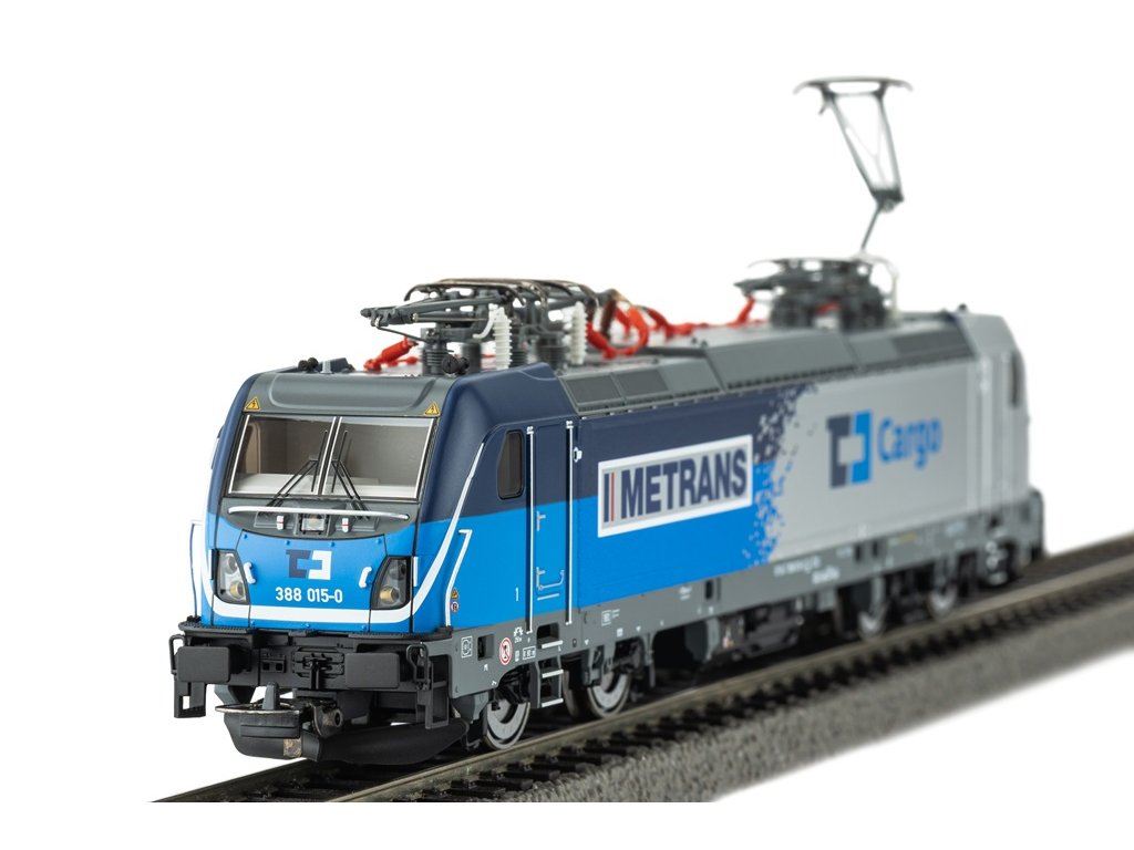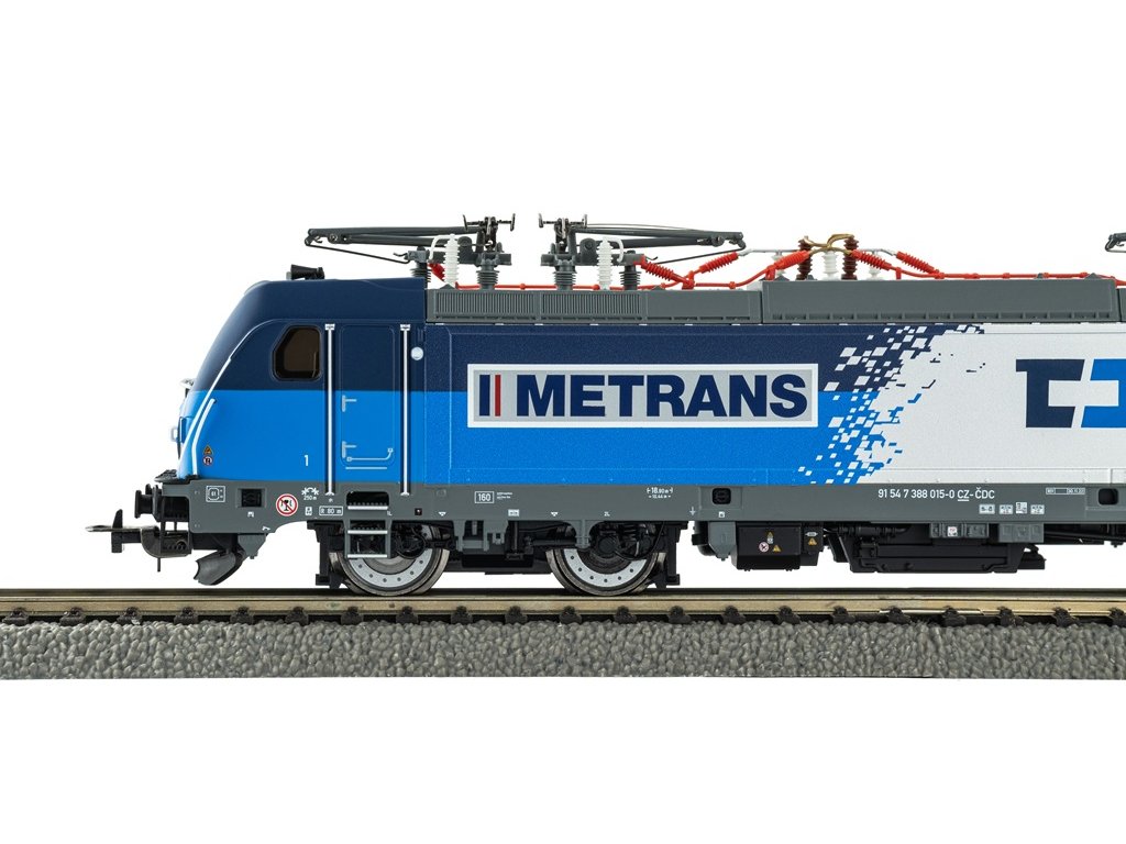 Detailně provedený model elektrické lokomotivy BR 388 Metrans Cargo je novinkou roku 2025. Řada 187, jako první zástupce již třetí generace lokomotiv Traxx od společnosti Bombardier, představuje moderní elektrickou dvounápravovou lokomotivu pro systémy 15 kV a 16,7 Hz i 25 kV 50 Hz střídavého proudu. Zvláštností nové konstrukce je 180kW dieselový pomocný motor, který umožňuje překonávání krátkých úseků bez trolejového vedení rychlostí přibližně 50 km/h. Specifikace: DC napájení digitální ovládání délka s nárazníky 217 mmminimální rádius 358 mmšachta NEM + krátké spřáhlodigitální rozhraní NEM 658 PluX22 2 bandážovaná kolazvukový dekodér PluX22 zvuk – ano, zvukový dekodér PIKO vybavený z výroby venkovní osvětlení bílá/červená - svítí v závislosti na směru jízdy Hlavní vlastnosti: novinka roku 2025digitálně spínatelné osvětlení stanoviště strojvedoucíhočtyři jednoramenné kovové sběračedetailní vybavení stanoviště strojvedoucíhohladké boční plochyzvuk odpovídající skutečné předloze realistické barevné provedenídetailní zpracováníatraktivní design