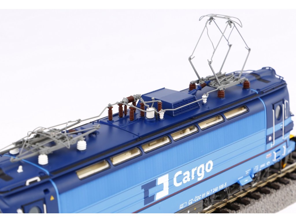 Novinka pro rok 2021 z produktové řady Expert! Věrný a detailní model elektrické lokomotivy BR 240 ( Škoda 47E, S 499 „Laminátka“) v barvách a potisku ČD Cargo. Zaujme precizně a ostře vylisovanými detaily a liniemi karoserie, které jsou podrobně doplněny například světlíky ve strojovně. Věrně reprodukován byl rovněž podvozek dotvářející celkový dojem. Barevné provedení i potisk, zahrnující veškeré dekorativní prvky, jsou nejvyšší kvality, odpovídající produktové řadě. Vzhled je korunován precizně reprodukovanou střechou s dvojicí kovových pantografů. Model je osazen výkonným, setrvačníky vybaveným motorem. Bílé/červené LED osvětlení se mění v závislosti na směru jízdy. Model je vybaven digitálním dekodérem se zvukovým modulem a reproduktorem, který obsahuje knihovnu zvuků věrných předloze a umožňuje ovládat světla na podvozku, v kabině strojvedoucího i strojovně. Je kompatibilní s protokoly DCC, Rail-ComPlus®, Motorola® a Selectrix®, a umožňuje i provoz v analogovém režimu. Příslušný provozní režim umí sám chytře rozeznat. S ovládacími jednotkami PIKO SmartControl, nebo i jednotkami kompatibilními s formátem mfx®, nabízí široké možnosti individuálního mapování. K lokomotivě se nabízí vagóny odpovídajícího typu a úpravy. Hlavní vlastnosti:vestavěn digitální dekodér se zvukovým modulem a reproduktoremčtveřice nápravmotor s dvojicí setrvačníkůdvojice bandážovaných hnacích kolsvětla s přepínáním barvy dle směru jízdyosvětlení interiérudvojice pantografůrozhraní PluX22 dle NEM 658šachta dle NEM 362 s kinematikou krátkého spřáhla Dokumentace:brožura k BR 240 (S 499) (CZ)obecné informace k BR 240 (S 499) (DE, EN, NL, CZ)návod k obsluze a seznam náhradních dílů modelu č. 51385 (DE, EN, NL, CZ)návod k obsluze digitálního dekodéru č. 56477 (DE)návod k obsluze digitálního dekodéru č. 56477 (EN)