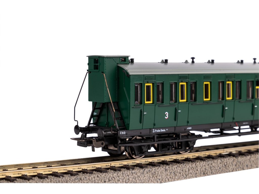 Model čtyřnápravového osobního vozu s brzdařskou kabinou ČSD v éře III s propracovanými detaily se stane výborným doplňkem vaší sbírky. Hlavní vlastnosti: detailní zpracování modeluhřídel NEM + krátký spojovací článek