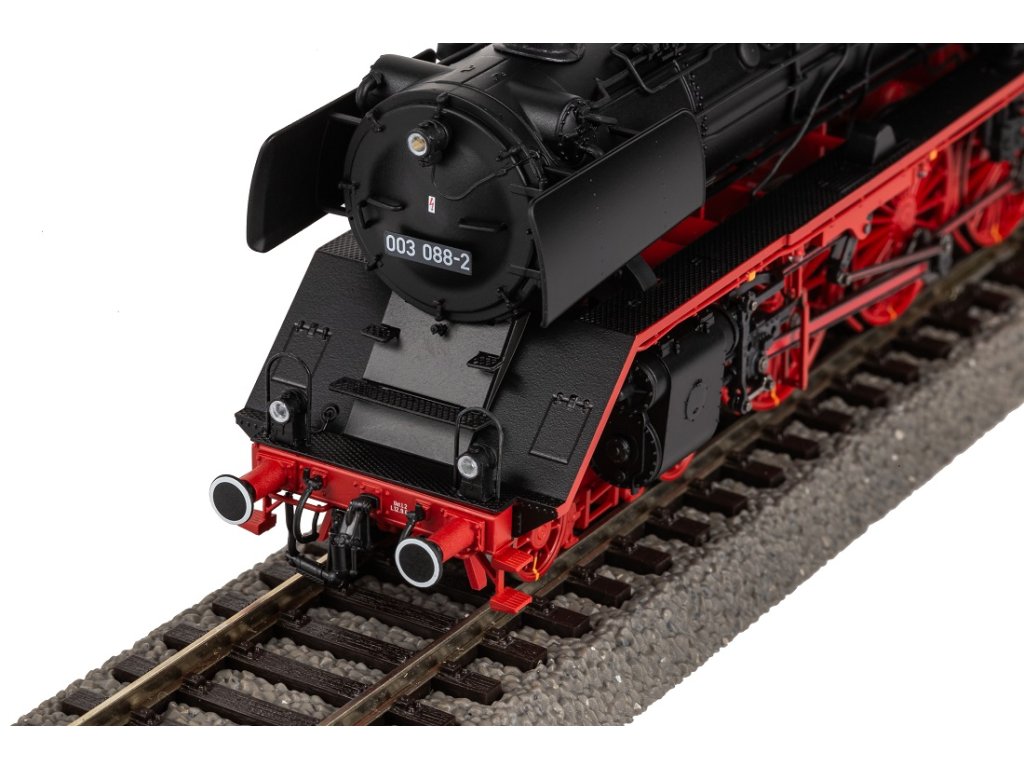 Novinka roku 2023. Model třídy 003 charakterizuje vysoko uložený, štíhlý kotel a vzdušný, otevřený rám s volným výhledem. Jemný podvozek s jemnými paprsky a výrazně tvarovanými protizávažími je obzvláště elegantní. Nový design se vyznačuje sladěnými doplňkovými díly, jako jsou zvonky, čerpadla a lampy. Vnější vzhled dotváří řada připojených kotlových trubek. Pohonný systém, včetně setrvačníku, je umístěn v tendru a zajišťuje ideální jízdní vlastnosti. Verze modelu XP se vyznačuje přepínatelným osvětlením v motoru a na kabině řidiče, červeně blikajícím topeništěm a pulzním odpařovačem ovládaným synchronně s koly. Specifikace: napájení ACdigitální ovládání délka s nárazníky 275 mmNEM šachta s kulisou krátkého spřáhla, digitální spřáhlominimální rádius 422 mmdigitální rozhraní NEM 658 PluX22zvuk – ano, zvukový dekodér PIKO vybavený z výroby osvětlení - bílá/červená svítí v závislosti na směru jízdyfunkce párydigitálně přepínatelné osvětlení kabiny a osvětlení topeniště (s dekodérem PluX22) Hlavní vlastnosti: realistické barevné provedenídetailní zpracováníatraktivní design