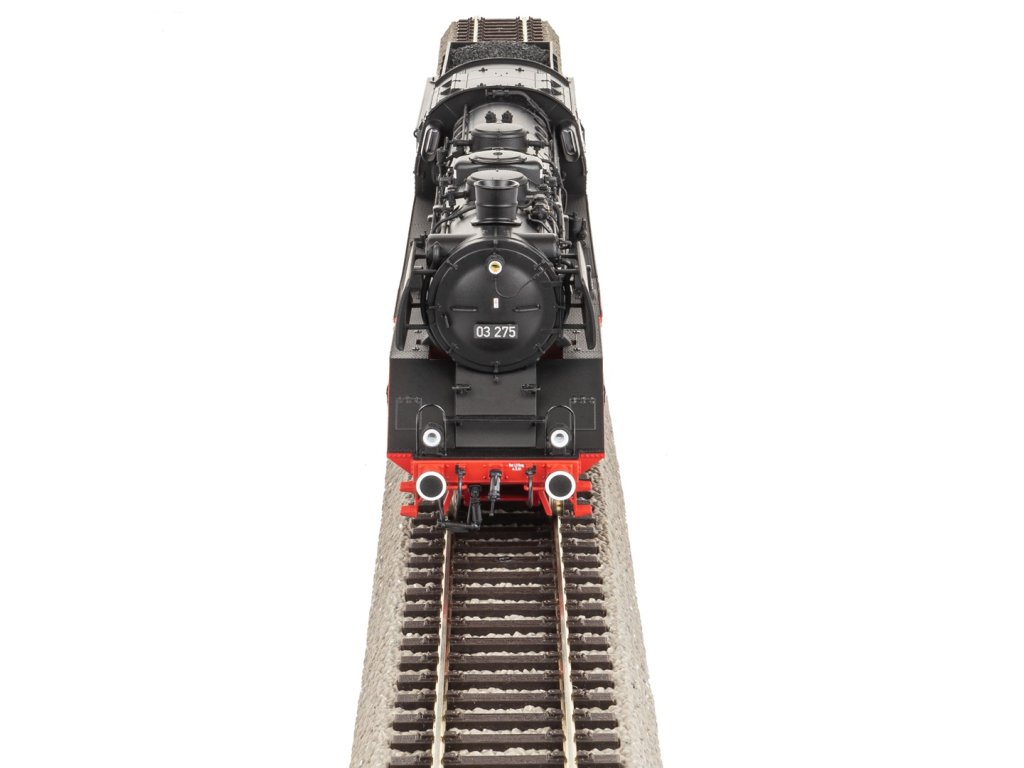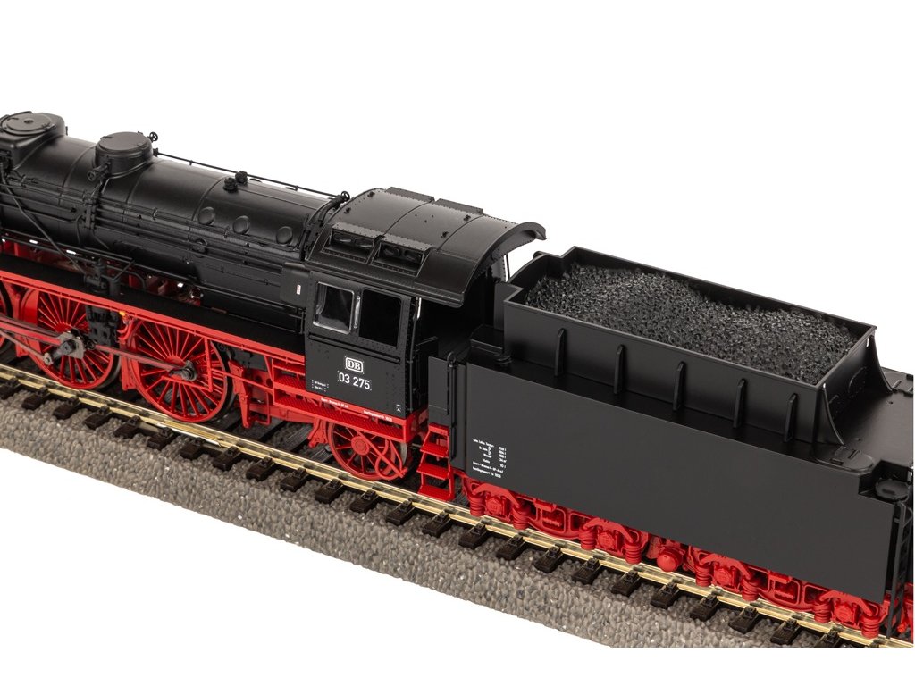 Parní lokomotiva řady BR 03 je novinkou roku 2024. Stejně jako originál má model čtyři velká přední kola, odpovídající reflektory, správně ztvárněný rám a věrně provedené špalíkové brzdy. Celkový dojem doplňuje ostře konturovaný potisk a krátká tabulka s označením lokomotivy. Díky modernímu rozhraní PluX22 je možné model snadno dodatečně vybavit digitálním dekodérem. Kromě toho je model připraven i na dodatečnou instalaci zvukového modulu s co největším reproduktorem. Specifikace: napájení DCanalogové ovládání délka s nárazníky 275 mmšachta NEM minimální rádius 422 mm2 bandážovaná koladigitální rozhraní NEM 658 PluX22zvuk – ne, dodatečná montáž zvukového dekodéru PIKO, číslo produktu 56620 venkovní osvětlení - bílá/červená svítí v závislosti na směru jízdydodatečná montáž funkce páry, číslo produktu 56620 digitálně přepínatelné osvětlení kabiny a osvětlení topeniště (s dekodérem PluX22) Hlavní vlastnosti: realistické barevné provedenídetailní zpracováníatraktivní design