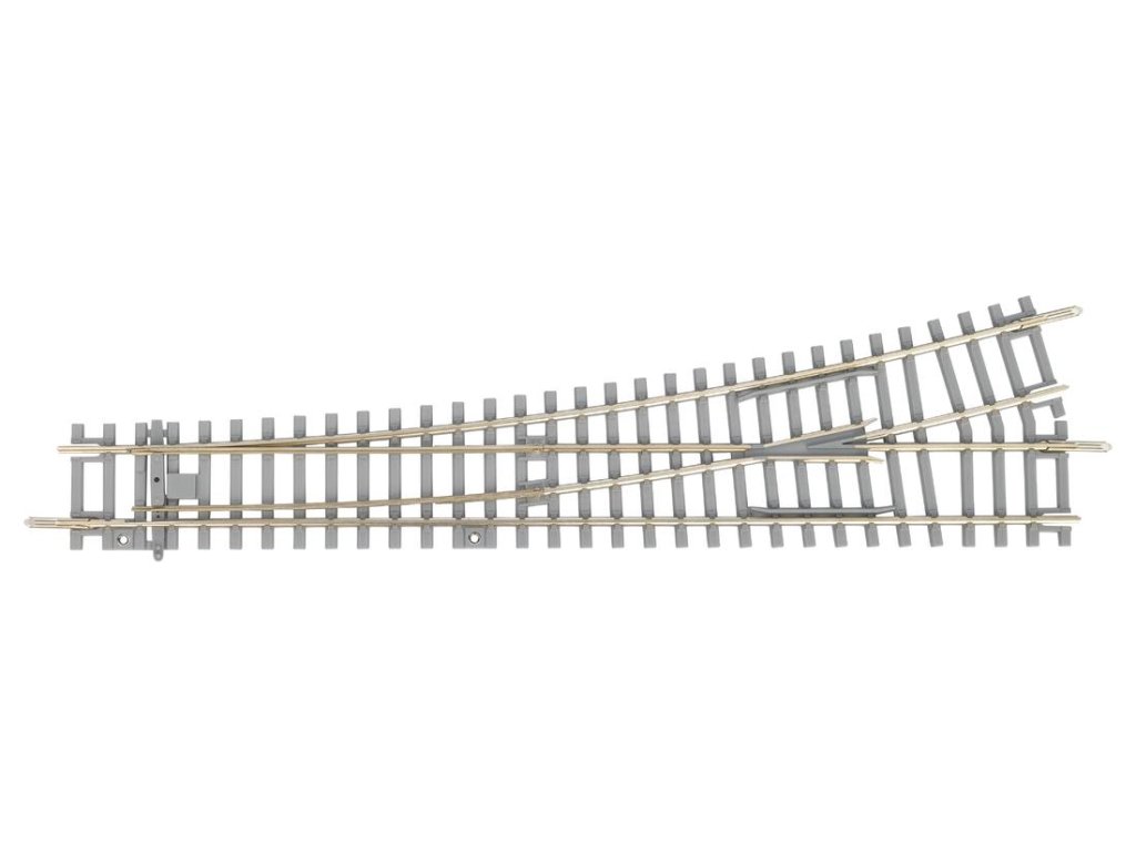Výhybka s detailní reprodukcí betonových pražců moderních tratí, ve věrných barvách. Kombinuje přímou kolej G239 a 15° oblouk R9 ve směru doleva. Lze ji ručně ovládat. Nabízí se také dálkově ovládaný přestavník, pro který je zde uchystané připojení. Hlavní vlastnosti: jednoduchá, směr dolevadélka 239 mm15° poloměr (R9) 908 mmreprodukce betonových pražců Dokumentace: Brožura ke kolejivu PIKO H0 A-Gleis (DE, EN)