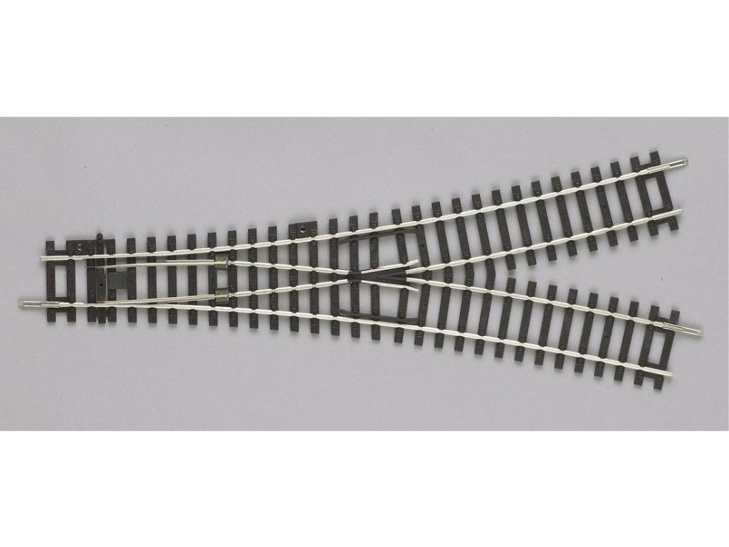 Výhybka s detailní reprodukcí dřevěných pražců, ve věrných barvách. Kombinuje dvojici symetrických 15° oblouků R9. Lze ji ručně ovládat. Nabízí se také dálkově ovládaný přestavník, pro který je zde uchystané připojení. Hlavní vlastnosti: symetrická15° poloměr (R9) 908 mmreprodukce dřevěných pražců Dokumentace: Brožura ke kolejivu PIKO H0 A-Gleis (DE, EN)