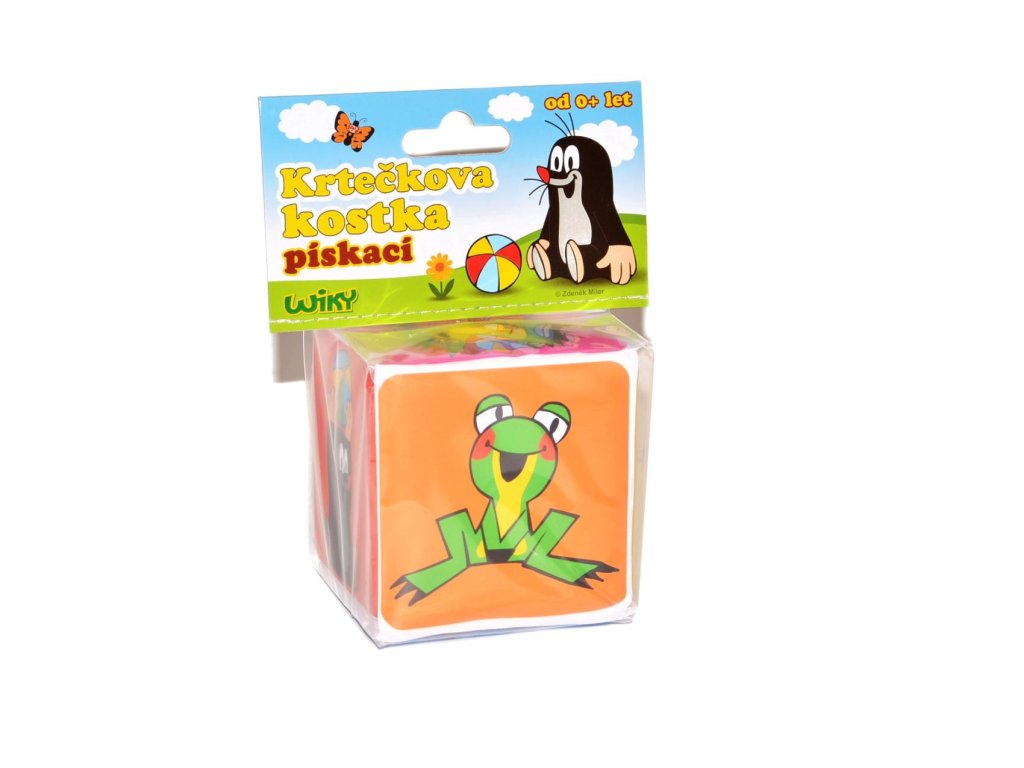 Pískací kostka z bezpečného materiálu pro miminka z kolekce s oblíbenými postavičkami Krtečka a jeho kamarádů přinese dětem velkou zábavu. Každá stěna kostky je jinak barevná a je na ní zobrazen buď Krteček nebo jeho kamarádi. Kostka vydává pískací zvuky.