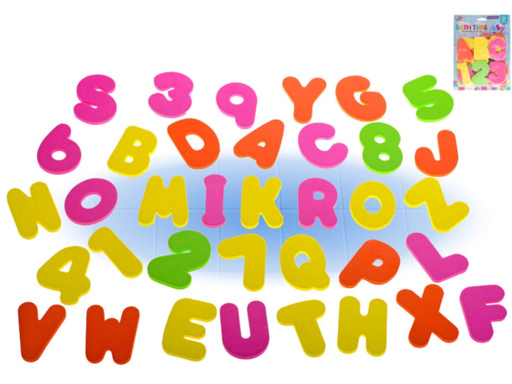 Písmena a čísla pěnová brevná set 36ks na koupání do vany do vody