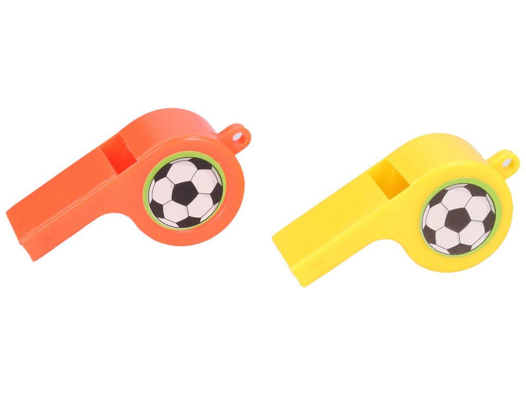 plastová. Velikost 5 cm. Červená, žlutá písťalka.