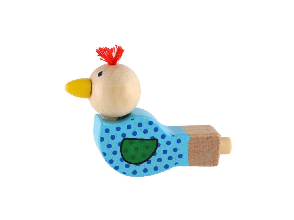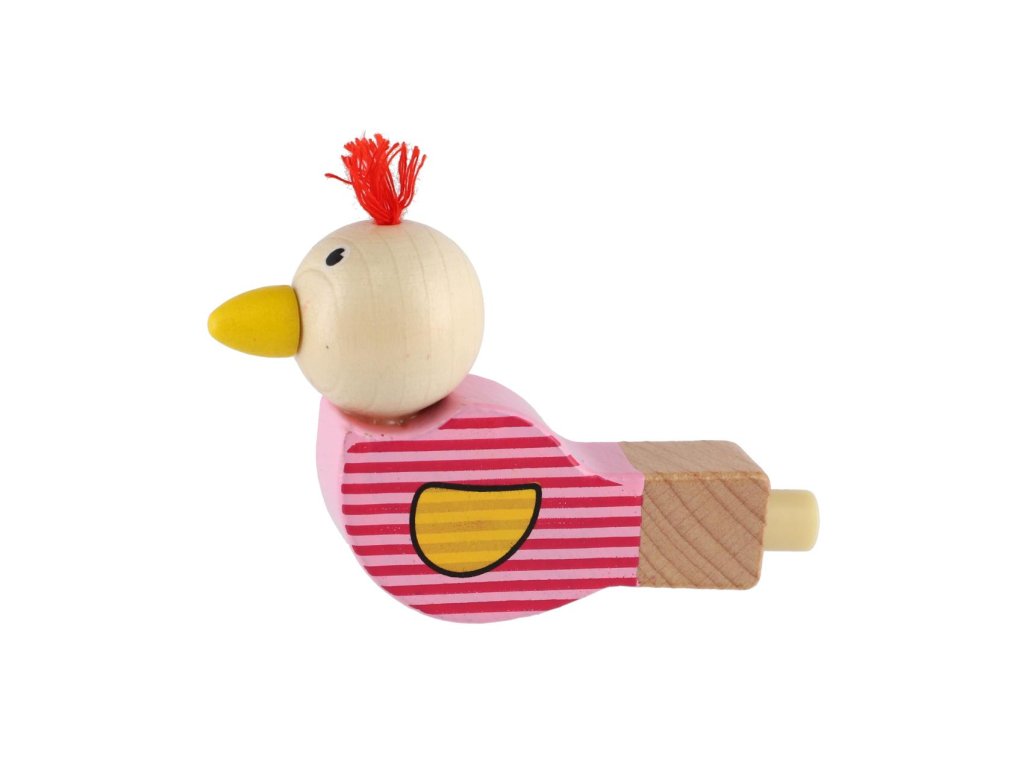 Roztomilá dřevěná píšťalka ve tvaru barevného ptáčka vykouzlí úsměv na tváři každému dítěti. Po fouknutí vydává příjemný zvuk a díky svému tvaru se perfektně drží i menším dětem. Je vyrobena z kvalitního dřeva, zdobená veselými motivy a doplněná malým střapcem jako „čupřinou“.