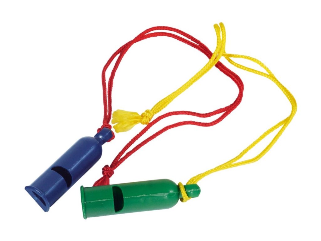 Píšťala signální plastová pro nejmenší děti. Dětská píšťalka vyrobená z plastu k zavěšení na krk.