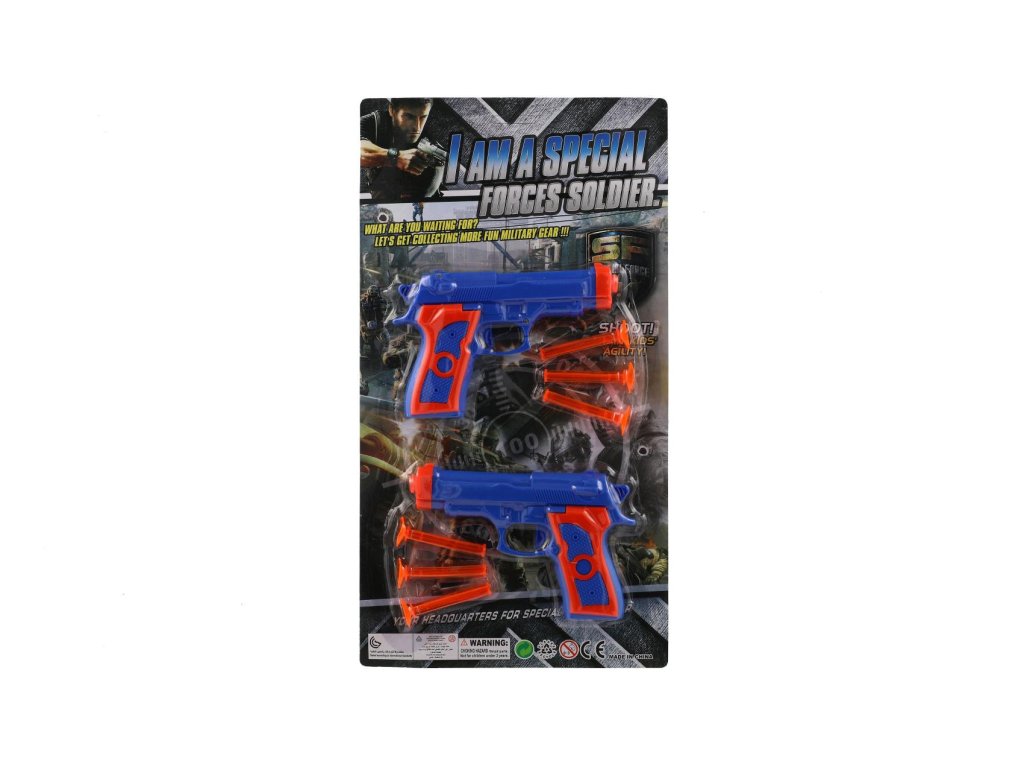 Pistolky potěší především kluky, kteří si chtějí hrát na skutečné policisty. Nyní už před nimi nikdo neuteče. Dětem se při hře s pistolkami a náboji nemůže nic stát, protože náboje jsou opatřeny přísavkami. Děti mohou střílet do terče, nebo i na sklo. Pistolky jsou vyrobeny z vysoce kvalitního a zdravotně nezávadného plastu, který je odolný vůči mechanickému poškození.