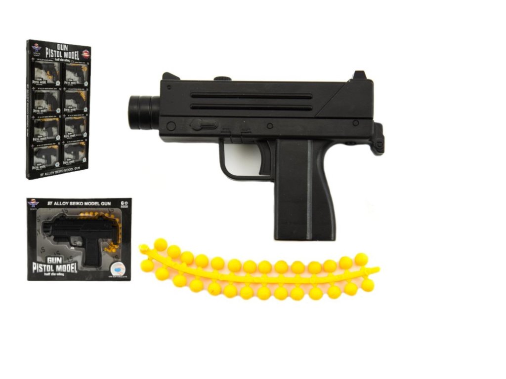 Pistole kov/plast 11cm na kuličky mix druhů v krabičce 15x12cm 8ks v boxu
