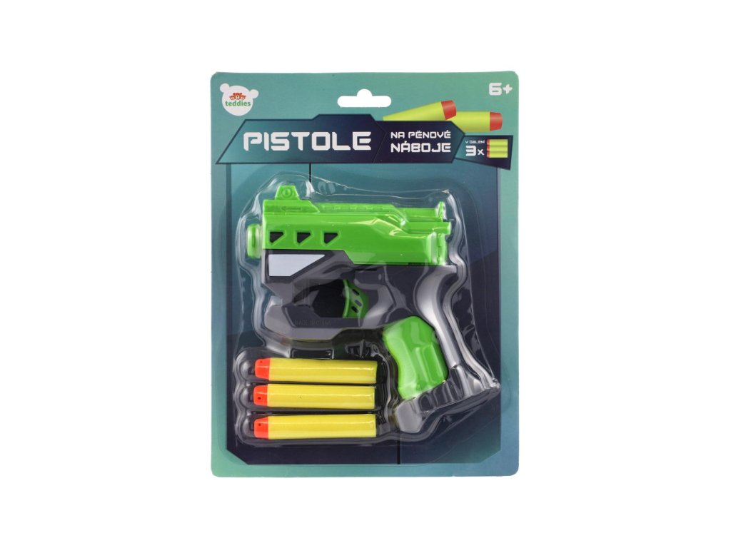Pistole na pěnové náboje 12x14cm plast + 3ks nábojů 2 barvy na kartě