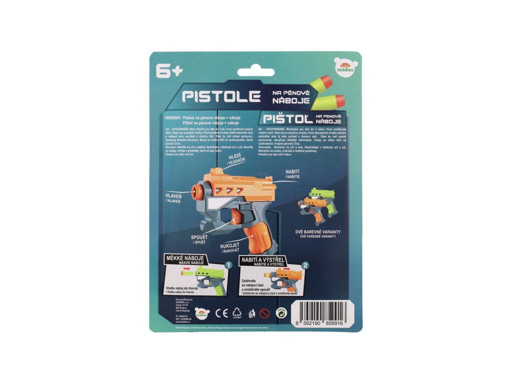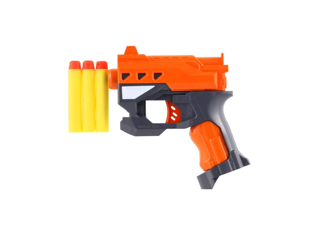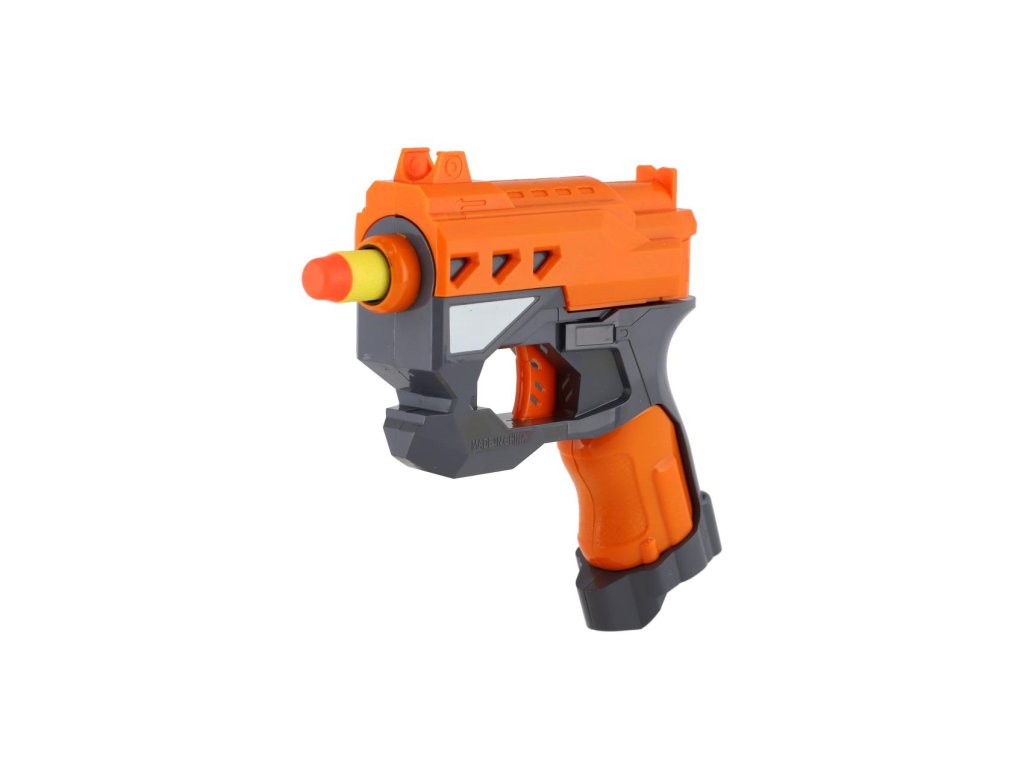 Hravá zábava nejen pro kluky! Stylová pistole akorát do ruky je na pěnové náboje a zabaví každého malého pistolníka. Umístěte měkký pěnový náboj do hlavně pistole, zatáhněte za nabíjecí část, zamiřte na cíl a zmáčkněte spoušť!