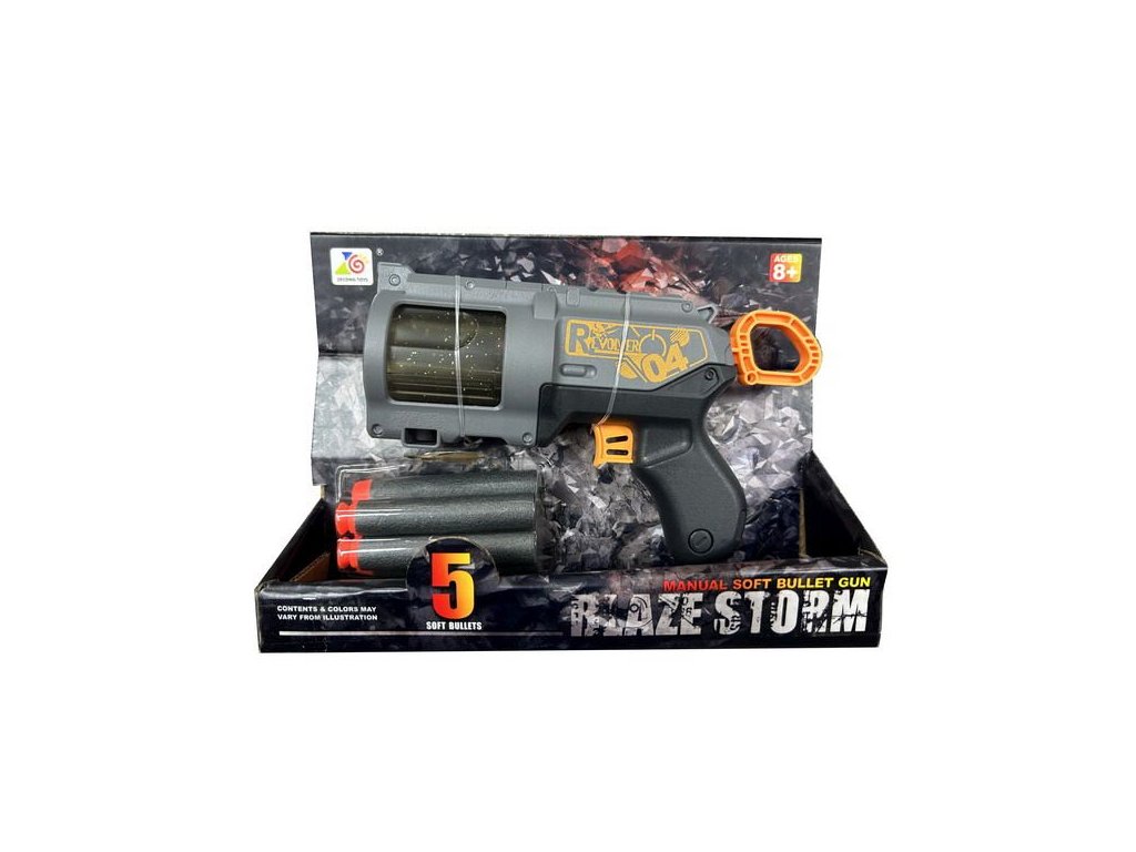 Pistole na pěnové náboje. Velikost 17 cm. Balení obsahuje 5 nábojů. Přesné rozměry pistole 16,8x10,5x4,6 cm. Nabití natažením, jednotlivé střely, výstřel stiskem spoušti.