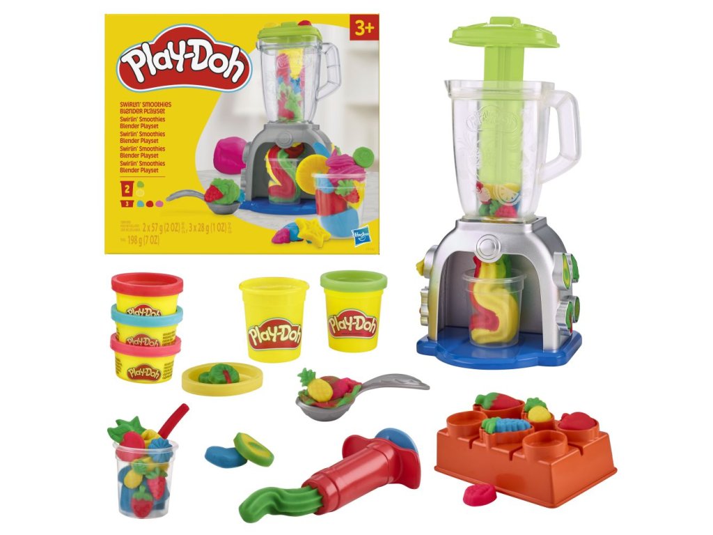 Přichází čas ponořit se do povzbuzující zábavy plné fantazie s sadou Play-Doh Blender na Smoothies! Tento set umožňuje malým milovníkům vaření a přípravy modelovací hmoty hrát si na kuchaře a vytvářet falešné smoothie - stačí vytvořit tvary ovoce a zeleniny z modelovací hmoty pomocí forem a pak je vložit do mixéru, abyste získali vesele vytočené hračkářské nápoje! A když přijde na ozdobení, fantazie nemá mezí! Růžová šlehačka z modelovací hmoty? Proč ne! Žluté jahody k hrám? Samozřejmě! Umělé modré brokolice? Pojďte na to! Fantazie nezná hranic! Tento set je ideální způsob, jak kreativně trávit čas pro děti od 3 let.