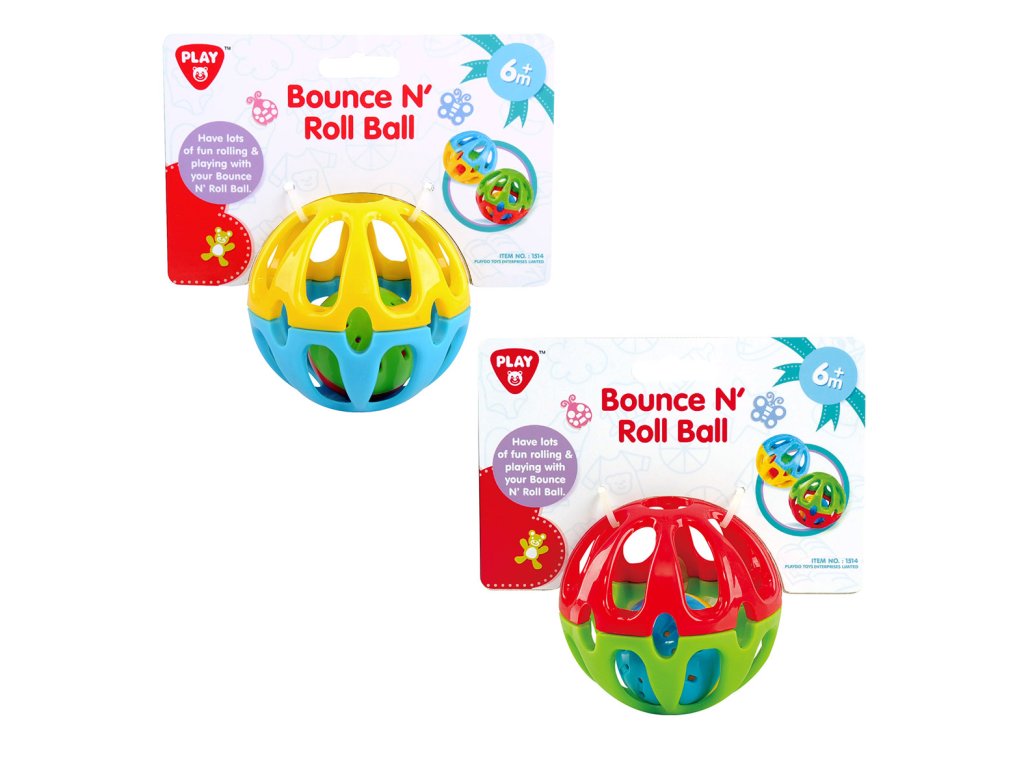 Gumový míček z tvrzeného materiálu s otvory, díky kterým ho uchopíš i malou rukou. Při hře v míčku pobíhá barevná rolnička a krásně zvoní. Doporučený věk 6 m+