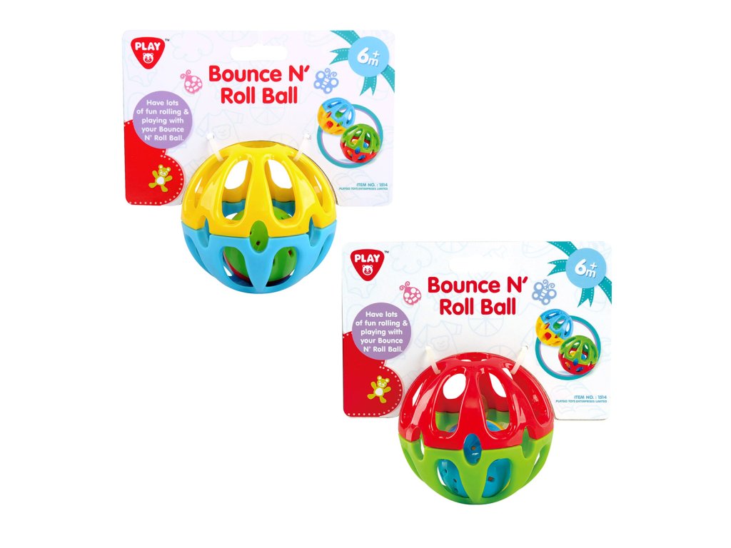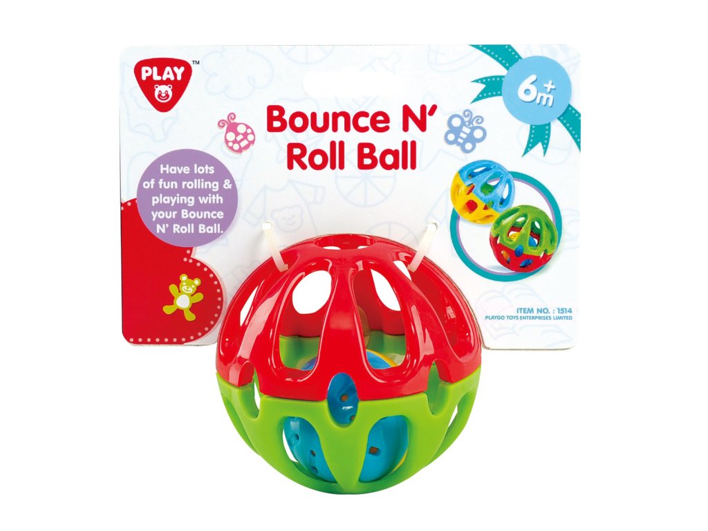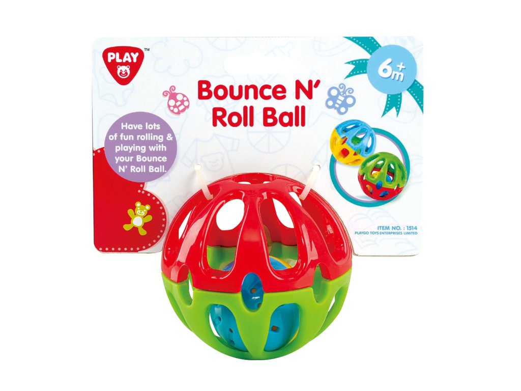 Gumový míček z tvrzeného materiálu s otvory, díky kterým ho uchopíš i malou rukou. Při hře v míčku pobíhá barevná rolnička a krásně zvoní. Doporučený věk 6 m+