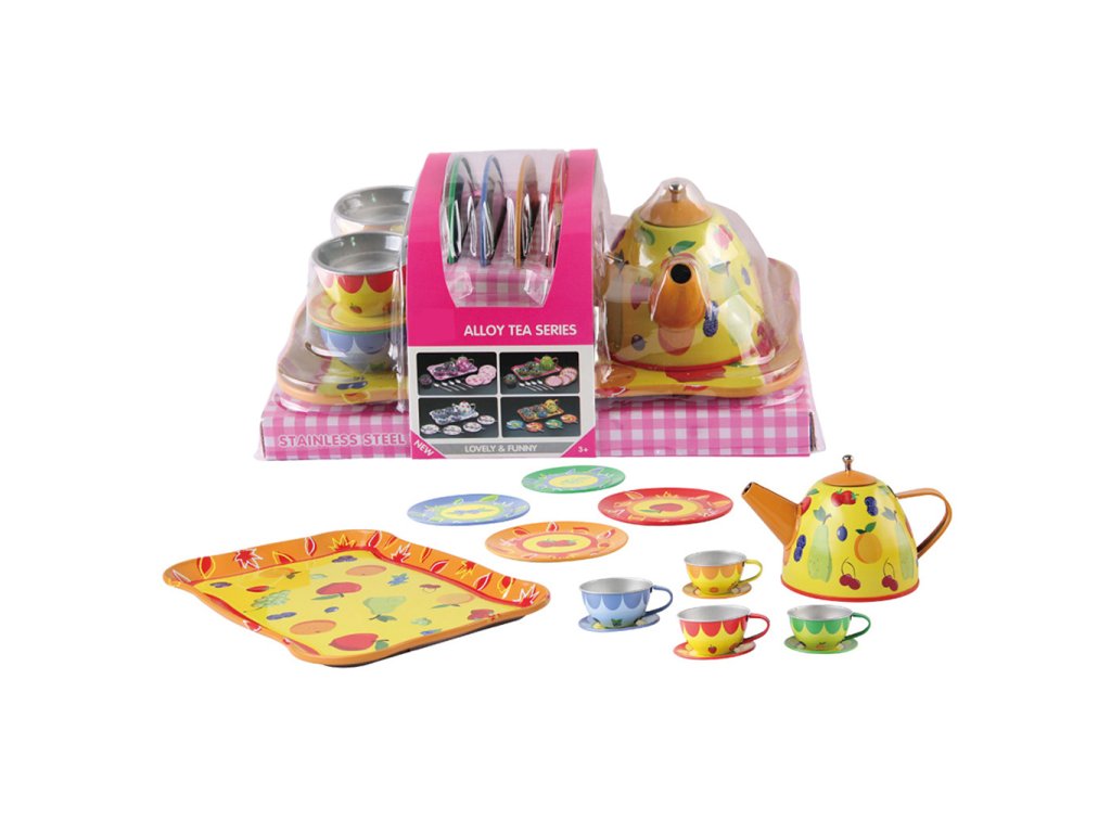Obsah balení: 15 dílů čajové sady Vyrobeno z plechu Kompletní sada pro dětské čajové párty Důležitá upozornění: Není vhodné pro děti do 3 let Obsahuje malé části - riziko spolknutí Před použitím odstraňte všechny obaly Pozor na nebezpečí udušení igelitovým obalem Bezpečnost a hygiena: Hračky ve tvaru jídla nejsou určené k jídlu Možný kontakt s potravinami Nutné umýt před a po každém použití Používat výhradně jako hračku Péče o sadu: Pravidelně čistěte všechny součásti Skladujte v suchém prostředí Kontrolujte stav jednotlivých dílů Udržujte sadu kompletní Další informace: Uschovejte obal pro pozdější použití Skutečné barvy a detaily se mohou lišit od obrázku na obalu Doporučujeme hru pod dohledem dospělé osoby Doporučené využití: Skvělé pro rozvoj sociálních dovedností Vhodné pro hraní na čajový dýchánek Podporuje dětskou představivost a kreativitu