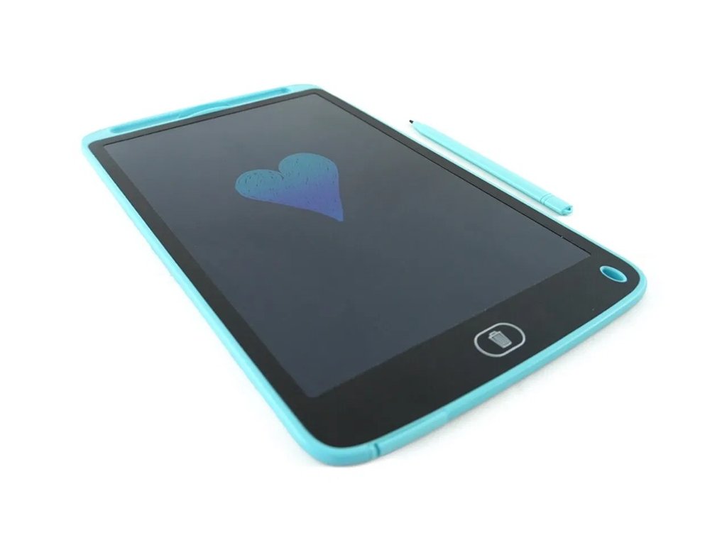 Kreslící tabulka - tablet. Přiloženou tužkou nakresli obrázek na tabulku a zmáčknutím jednoho tlačítka ho smaž. Tabulka je ve tvaru úzkého tabletu. Je moderní a designová. Má barevný podklad - nakreslené obrázky jsou na ní barevné. Velikost 10,5 palce.