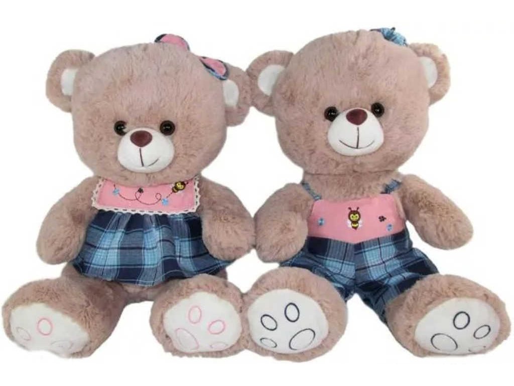 Roztomilý usměvavý medvídek v károvaném oblečku, s mašličkou, ve dvou variantách provedení /holka, kluk/, pro ty nejmenší milovníky plyšáků.