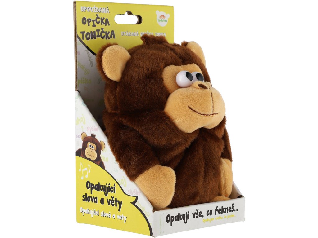 Rozkošná opička Tonička nadchne celou rodinu a zároveň si s ní užijete mnoho zábavy! Opička Tonička totiž umí mluvit - stačí na Tonču promluvit a ona legračně opakuje vše co uslyší svým pozměněným hlasem a bude u toho také roztomile přikyvovat hlavou. Opičku Toničku si tak určitě zamilujete a stane se důležitou částí Vaší rodiny!