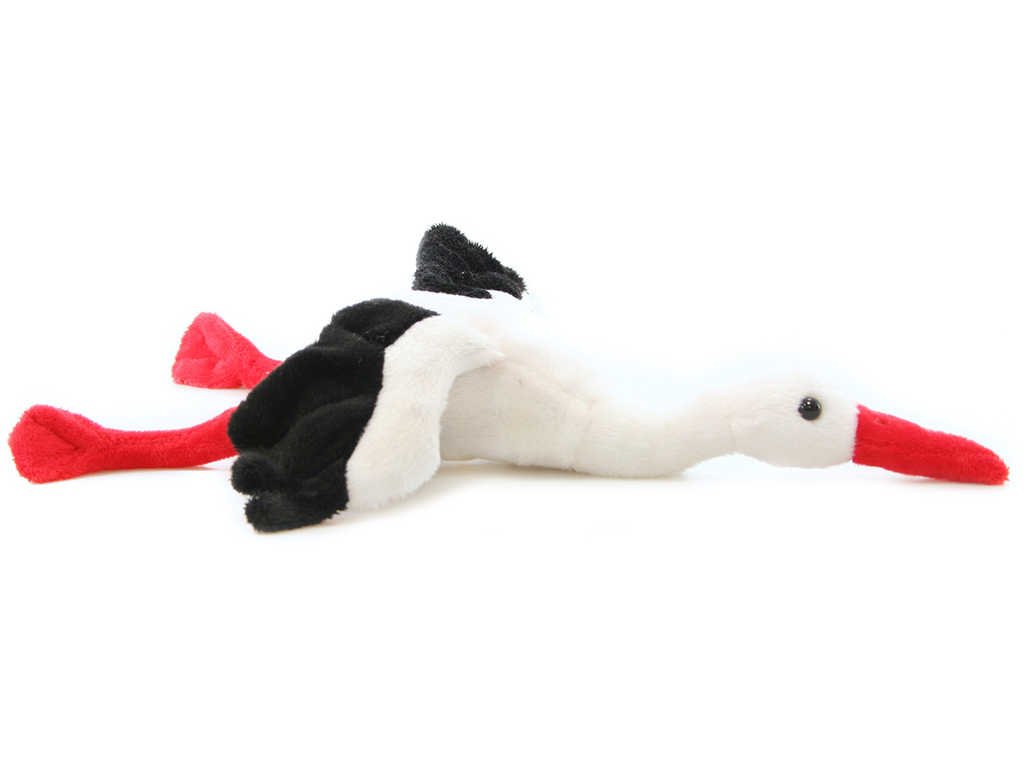 Čáp s dlouhýma nohama a zobákem, z plyše, pro všechny milovníky plyšových zvířátek.