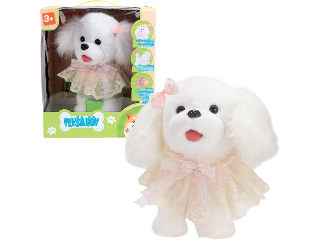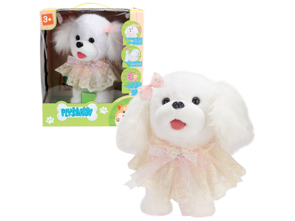 Přiveďte domů roztomilého a chytrého kamaráda, který vás okouzlí svými pohyby i zvuky! Interaktivní pejsek Aida je ideální společník pro děti od 3 let, kteří si užijí hru plnou pohybu, melodií a zábavy. Hlavní funkce a vlastnosti: • Reaguje na dotek: Pohlaďte pejska po hlavě a sledujte, jak přikyvuje, olizuje se, vrtí ocasem a štěká.• Chodí a hraje melodie: Stisknutím obojku pejsek začne chodit a zároveň hrát veselé melodie, které zpříjemní každou chvíli.• Vodítko s ovládáním: Součástí sady je vodítko, pomocí kterého můžete pejska řídit a zároveň si užít zábavu s melodickými efekty.• Nahrávání hlasu: Maltézského pejska můžete pomocí dlouhého stisknutí obojku přepnout do režimu nahrávání, který umožní zaznamenat vlastní hlasové povely.• Snadné ovládání: Krátké a dlouhé stisky obojku spouštějí různé funkce a zábavné reakce. Technické informace: • Doporučený věk: 3+• Napájení: 3× baterie AAA 1,5 V (nejsou součástí balení)• Materiál: Měkký plyšový povrch s plastovými částmi pro pohyblivé komponenty• Zvukové a pohybové efekty: Štěkání, olizování, vrtění ocasem, melodie Proč si vybrat interaktivního pejska Aidu: • Rozvíjí empatii a starostlivost: Dítě se učí pečovat o svého plyšového mazlíčka.• Podporuje motoriku a koordinaci: Hra s pejskaem rozvíjí jemnou motoriku a reakce.• Nabízí hodiny zábavy: Interaktivní funkce udrží dítě dlouho zaujaté.• Vhodný společník: Ideální pro hru doma i na cestách. Jak pejska používat: 1. Vložte baterie do obojku a zapněte hračku.2. Stiskněte obojek – pejsek začne chodit a hrát melodie.3. Pohlaďte ho po hlavě a vychutnejte si jeho roztomilé reakce.4. Použijte vodítko k řízení pejska a aktivaci zvukových efektů.5. Pro nahrávání hlasových povelů podržte obojek delší dobu stisknutý. Poznámka: Baterie nejsou součástí balení, doporučujeme použít kvalitní alkalické AAA baterie pro maximální výkon a dlouhou výdrž. Interaktivní pejsek Aida je ideální dárek pro všechny malé milovníky zvířat a technologie. Přineste do svého domova radost, hudbu a pohyb s tímto veselým plyšovým kamarádem! Objednejte si pejska Aidu ještě dnes a zažijte zábavu, která nikdy nekončí!