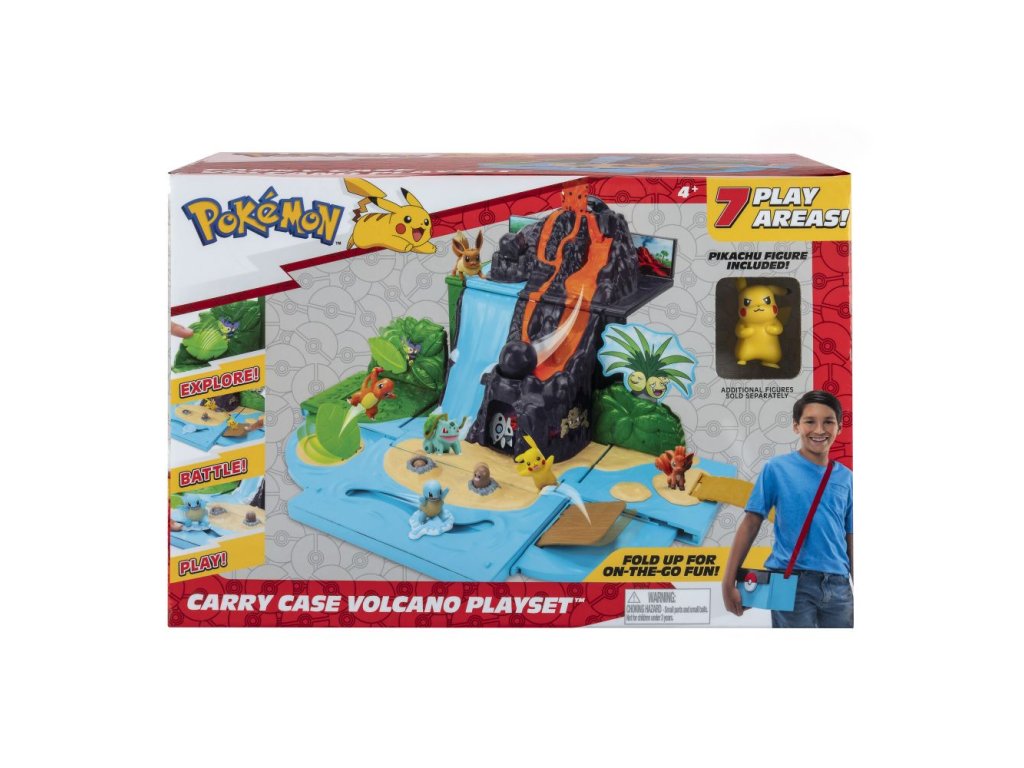 Přenosná hrací sada se sopkou, obsahuje jednu figurku Pikachu o velikosti 5,08 cm a hodí se pro každou figurku Pokémona o velikosti 5,08 cm. Po skončení zábavy jej lze snadno složit a přenést ve speciálním pohodlném batohu!
