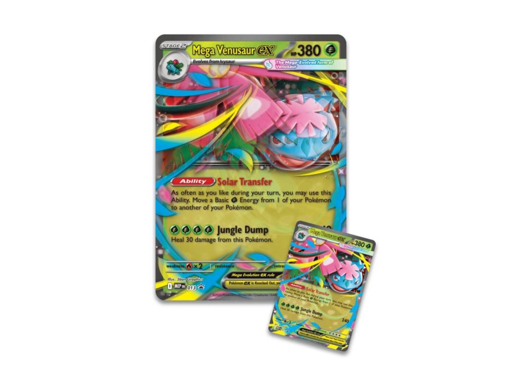 - 1 nadrozměrná lentikulární promo karta s Mega Venusaur ex