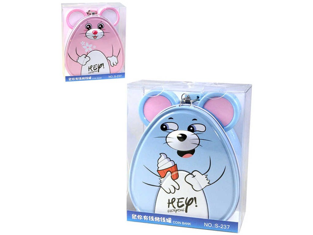 Originální, veselá plechová pokladnička, ve tvaru myšky, se zamykáním na zámek, ve dvou variantách provedení, pro všechny malé šetřílky. Baleno v sáčku.