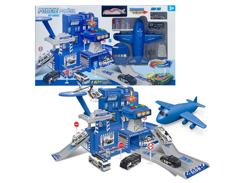 Policejní SET garáž s autem měnící barvu - Vaše vstupenka do světa vzrušujícího policejního dobrodružství! Představte si toto... Váš malý hrdina v uniformě, připravený vyrazit na misi. Siréna houká, světla blikají a auto mění barvu jako chameleon. Není to sen - je to realita s naším úžasným Policejním SETem garáže s autem měnícím barvu! Co dělá tento set tak výjimečným? 1. Realistická policejní garáž (51 × 43 × 22,5 cm po rozložení) - dokonalé zázemí pro každého malého strážce zákona. 2. Dva kovové modely autíček měnících barvu v měřítku 1:64 - protože každý správný policista potřebuje spolehlivé vozidlo. A co teprve, když může měnit barvu! 3. Policejní letadlo - pro ty situace, kdy je třeba zasáhnout z výšky. 4. 7 dopravních značek - pro vytvoření realistického městského prostředí. 5. Samolepky - pro personalizaci a ještě větší zábavu. Proč byste měli tento set koupit právě teď? - Rozvíjí představivost - Váš malý detektiv bude řešit složité případy a zachraňovat město před zločinem. - Učí zodpovědnosti - Péče o policejní stanici a vozidla učí děti důležitosti údržby a pořádku. - Podporuje motorické dovednosti - Manipulace s malými částmi a sestavování scén pomáhá rozvíjet jemnou motoriku. - Poskytuje hodiny zábavy - S 29 součástmi se vaše dítě nikdy nebude nudit! - Kvalitní zpracování - Vyrobeno z odolných materiálů, které vydrží i ty nejdivočejší policejní honičky. Ale počkejte, to není vše! Věděli jste, že hraní na policisty může pomoci vašemu dítěti: - Rozvíjet smysl pro spravedlnost a fair play? - Zlepšit komunikační dovednosti při "výslechu podezřelých"? - Posílit sebevědomí při "řešení případů"?