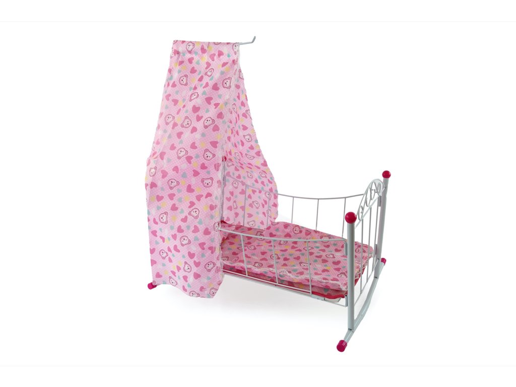 Kovová postýlka pro miminko max velikosti 38 cm. Postýlka je s nebesy, slabou peřinkou malým polštářkem.