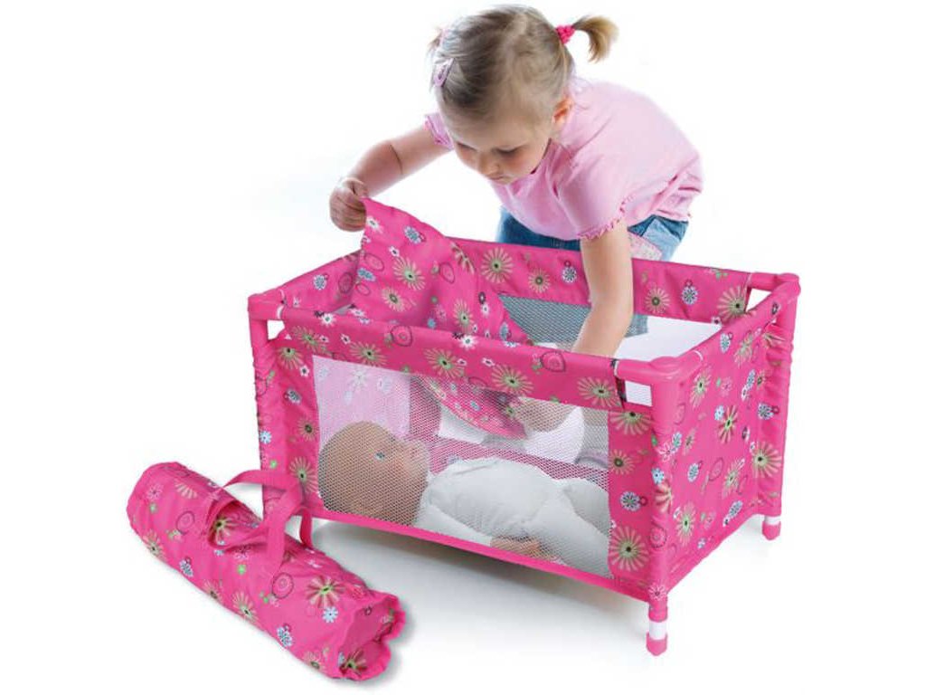 Květinová postýlka pro miminko je pro holčičky, které si rády hrají na starostlivé maminky. Když se maminka s panenkou vydá na nějaký výlet, potřebuje kromě kočárku také postýlku na spinkání. Postýlka v růžovém provedení se dá jednoduše a rychle složit do tašky. Panenka v ní má spoustu místa nejen pro sebe, ale i pro své plyšové kamarády. Jelikož má postýlka průhledné boky, maminky mohou své panenky neustále pozorovat.