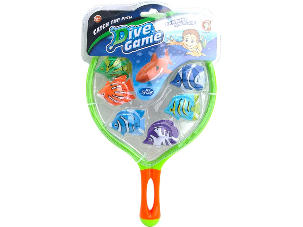 Sada rybářské síťky a šesti rybiček z plastu na chytání ve vodě, pro všechny malé rybáře a potápěče. Rybičky mají pohyblivý ocásek na mechanickém principu. Vhoď rybky do vody … dokážeš je všechny vylovit ?
