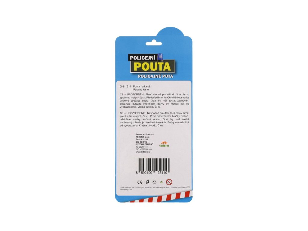 Pouta policejní kov 17cm s klíčem na kartě
