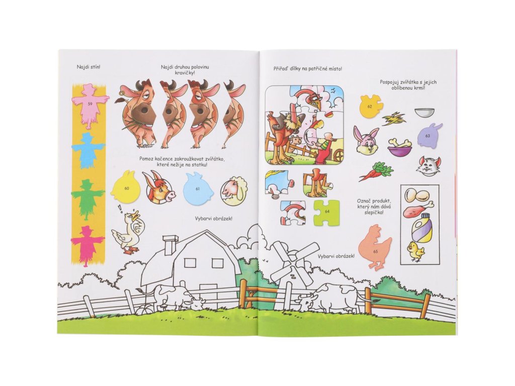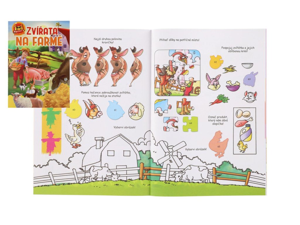 Zábavný pracovní sešit pro každou dlouhou chvíli se zvířátky na farmě! V sešitě najdeš 4 stránky nálepek a 16 stránek plných zábavných úkolů, rébusů, bludiští a spoustu dalšího. Dle čísel nalepte samolepky na správné místa a dotvořte si tak stránky k dokonalosti. S tímto pracovním sešitem si děti užijí zábavu a také podpoříte jejich logické myšlení.
