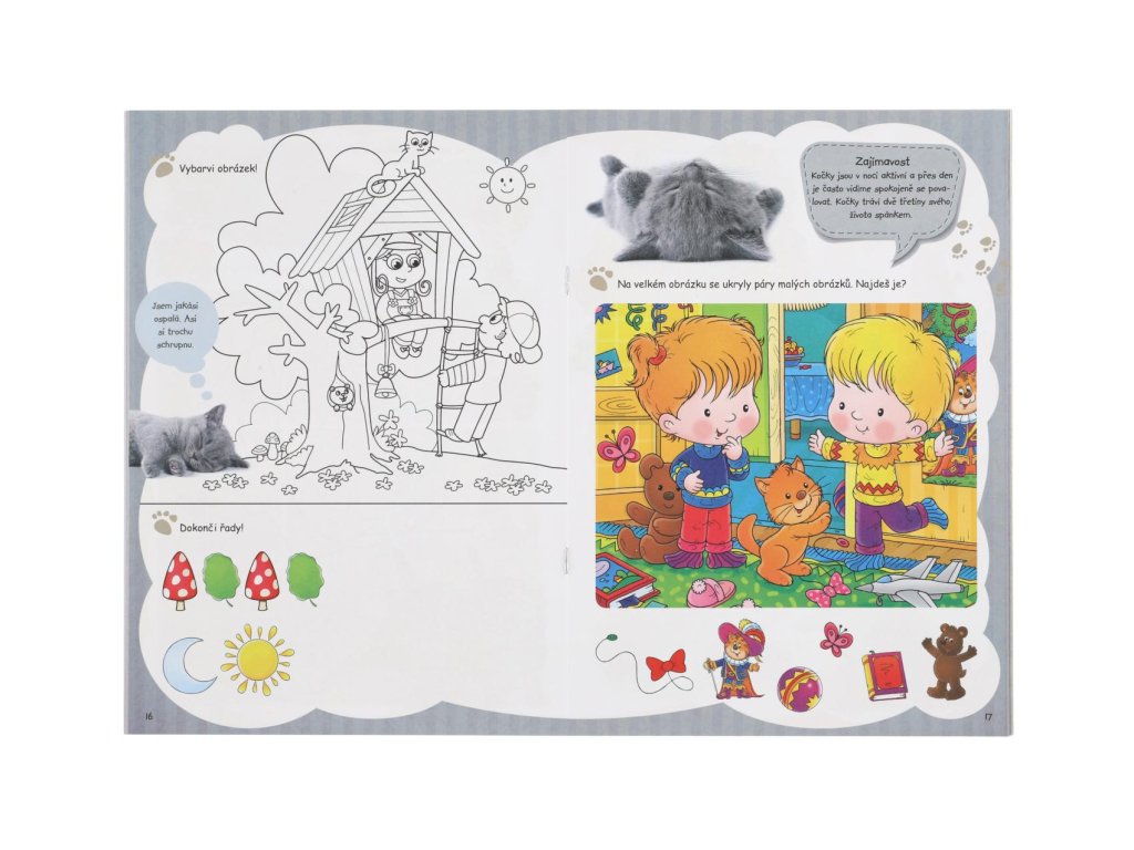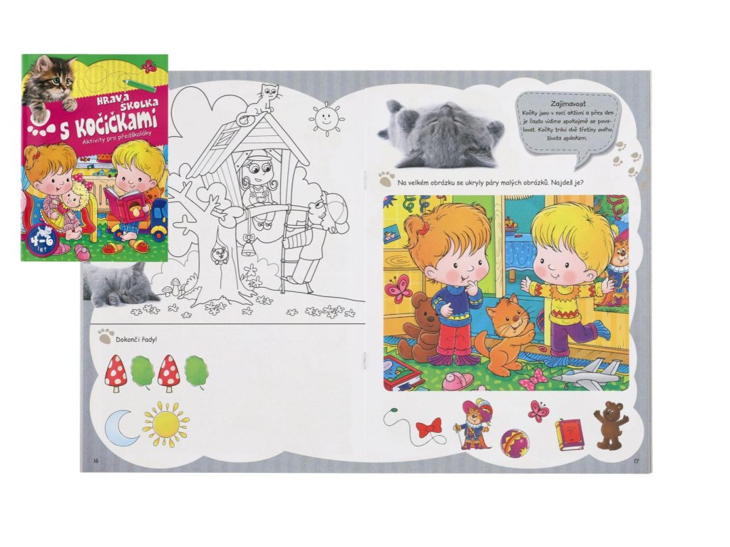 Aktivity pro předškoláky. Malé děti mají mimořádně rády kočky a zajímá je vše, co s kočkami souvisí. Knížka obsahuje zajímavosti a poznatky ze světa koček a v tomto kočičím světě budou děti s radostí řešit hravé úkoly. Tímto způsobem můžeme dosáhnout toho, aby se průběžně motivované učily hravou formou. Pracovní sešit je zdrojem zábavy a hravého "učení" pro 4- až 6leté děti a jejich rodiče.