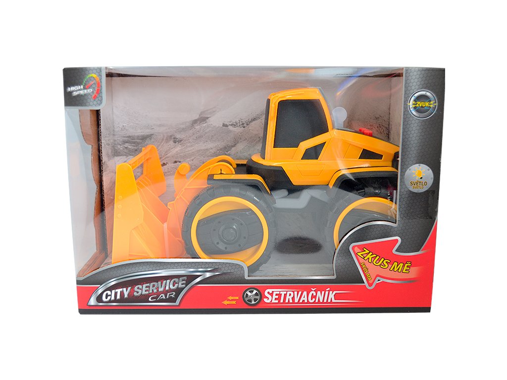 PRACOVNÍ STROJE - setrvačník - tlačítka pro zvukové a světelné efekty, jízda vpřed na setrvačník, funkce „ZKUS MĚ“ Použijte 3x baterie "AG13" 1,5V. Baterie jsou součástí balení – pouze pro zkušební provoz.3+