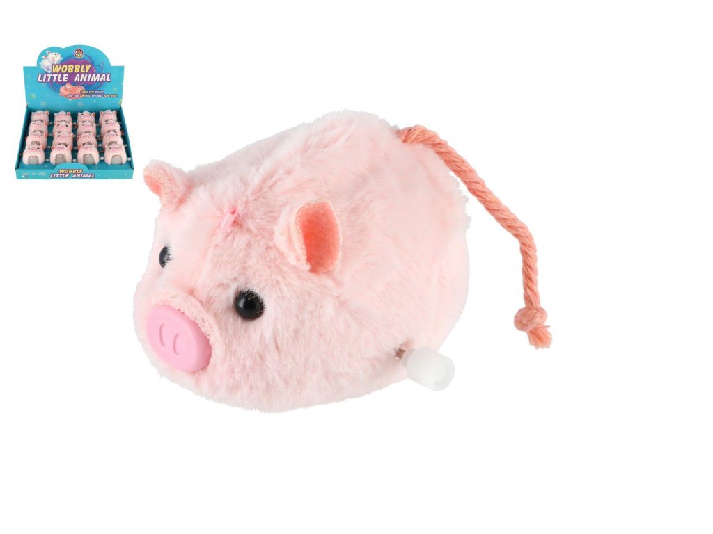 Prasátko je poháněno natahovacím klíčkem, který se používá k "natažení" mechanismu. Po jeho natáhnutí hračka začne chodit nebo se pohybovat, což je pro děti zábavné a fascinující. Plyšová část těla je měkká a příjemná na dotek.