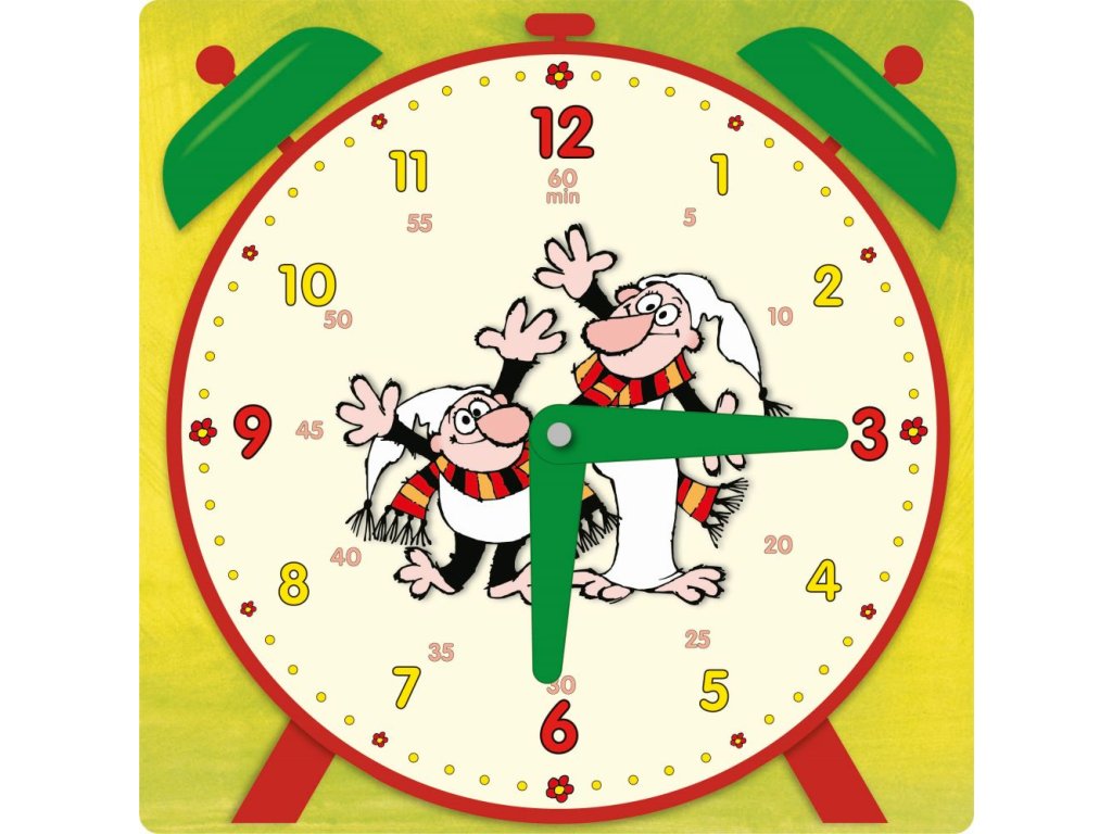 12ti hodinový čas+ minuty, materiál pevný karton s lesklou povrchovou úpravou, barevné ručičky, nýty vkládány strojově-nelze ručně rozpojit,