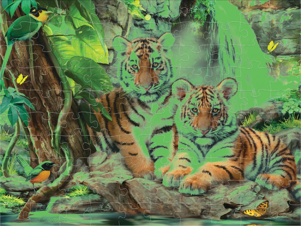 PRIME 3D Svítící PUZZLE - Tygr u vodopádu 100 dílků