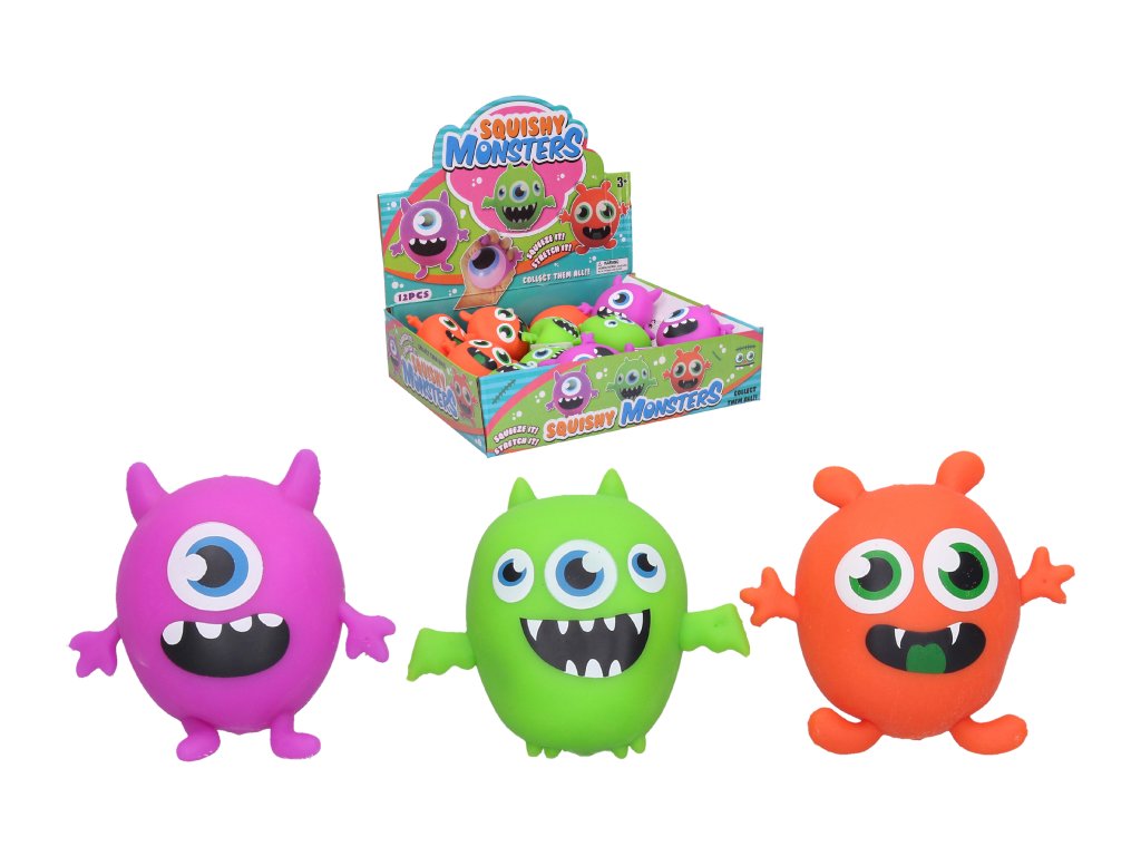 Příšerka mačkací. Velikost 9 cm. 12 ks display box. 3 varianty - fialová, oranžová, zelená.