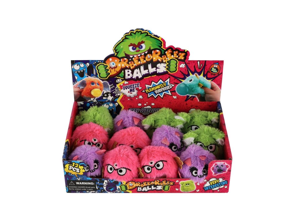 Příšerku můžete všelijak mačkat a zaručeně si s ní všude vyhrajete. Po stlačení se jí z pusy vytlačí sliz s kuličkami. Báječná žertovinka a nekončící zábava.