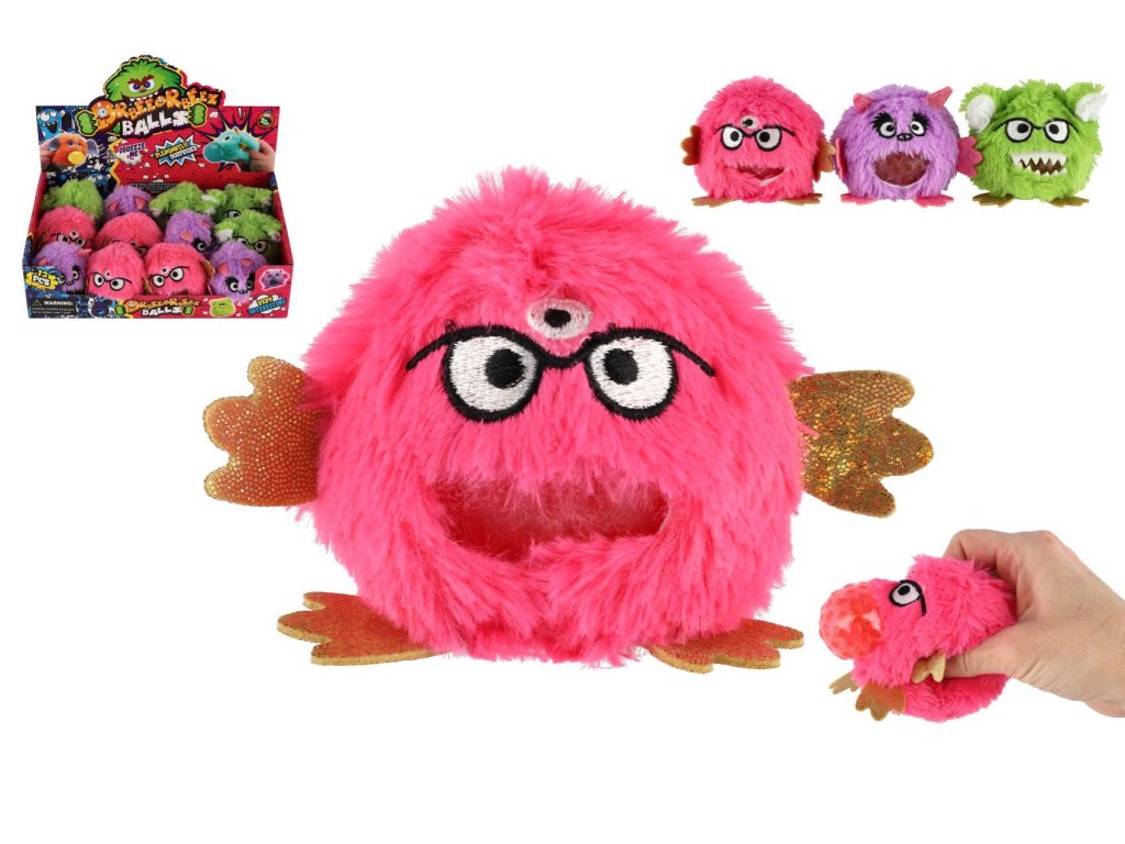 Příšerka plyšová antistresová mačkací 8cm 3 barvy 12ks v boxu