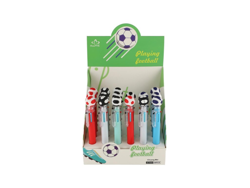Nápaditá propiska s motivem fotbalu prostě baví! Propiska s fotbalovým míčem zkrátka nesmí chybět v žádném penálu ani v žádném dětském šuplíku. Uvnitř se ukrývá 6 barevných tuh, které lze libovolně měnit. Přepínání mezi barvami je velmi snadné, stačí stlačit novou barvu. S touto propiskou si děti užijí spoustu zábavy, kreslení je bude bavit, navíc ji mohou využít jak ve škole, tak doma.