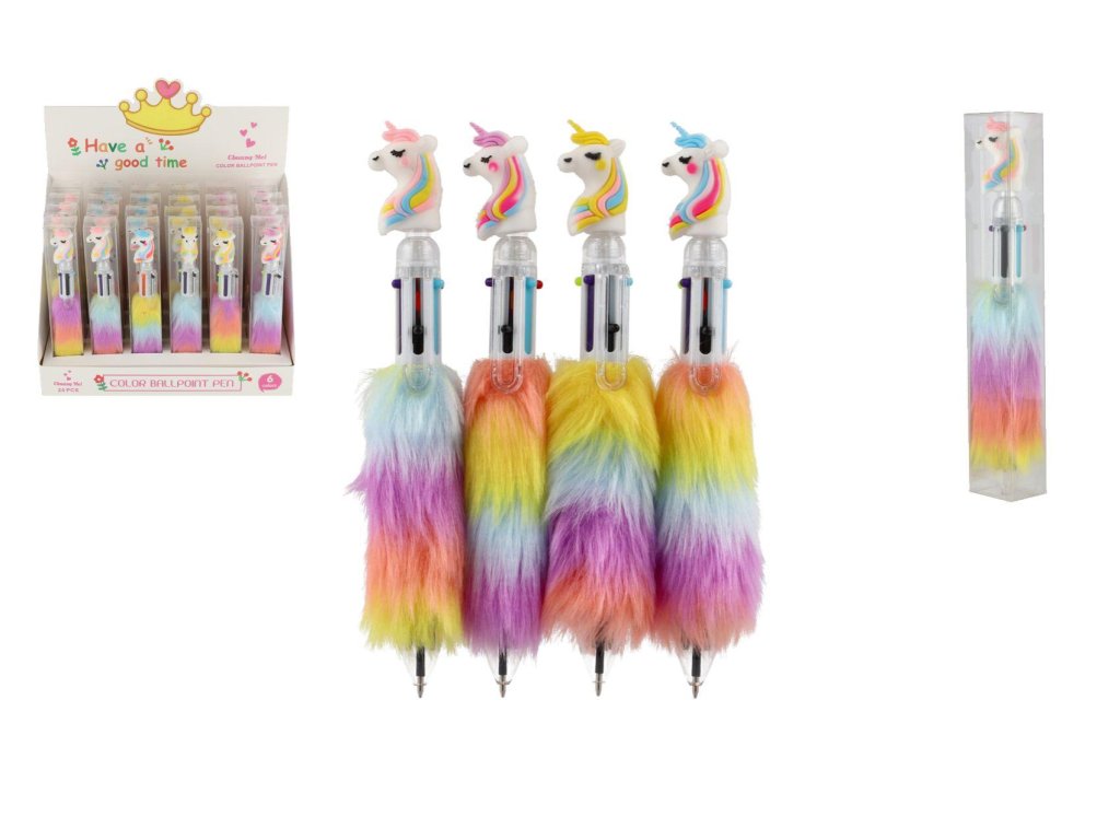 Propiska/pero jednorožec plyšová 6 barev plast 16cm 4 barvy v plastové krabičce 24ks v boxu