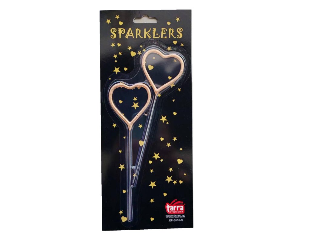 Prskavky ve tvaru srdce zlaté 2 ks 16,5cm na kartě 12ks v boxu