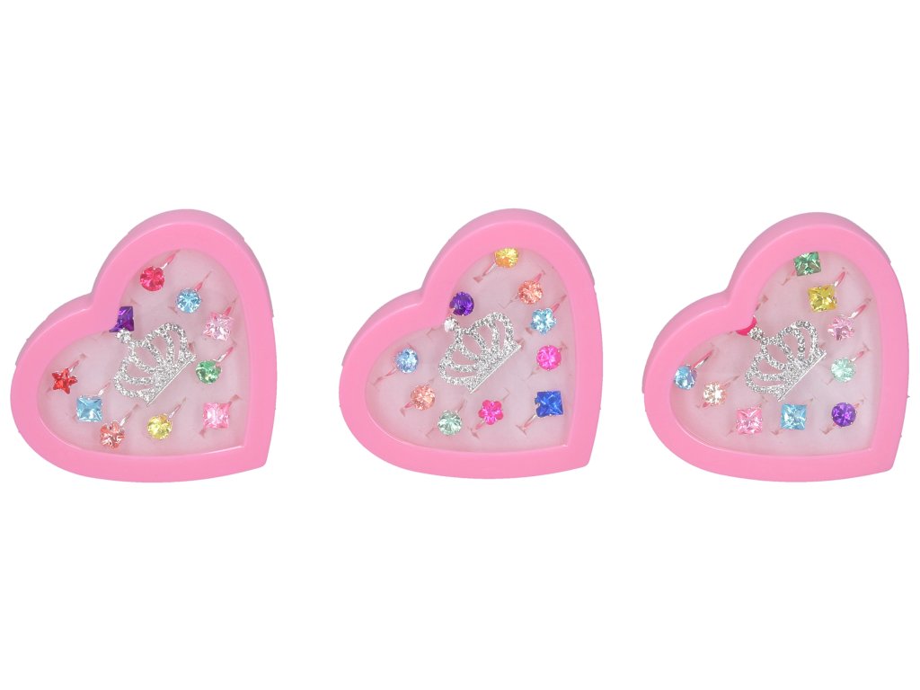 Prstýnky s kamínky set. Balení obsahuje 11 ks, 10 prstýnků s kamínkem a 1 sponka do vlasů s korunkou.
