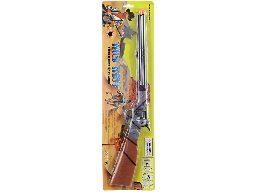 Plastová kovbojská puška kapslovka pro všechny malé kovboje a pistolníky. Dětská zbraň na kapslíky - na 8 ran. Součástí šerifská hvězda. Herní set Divoký západ (Wild West).